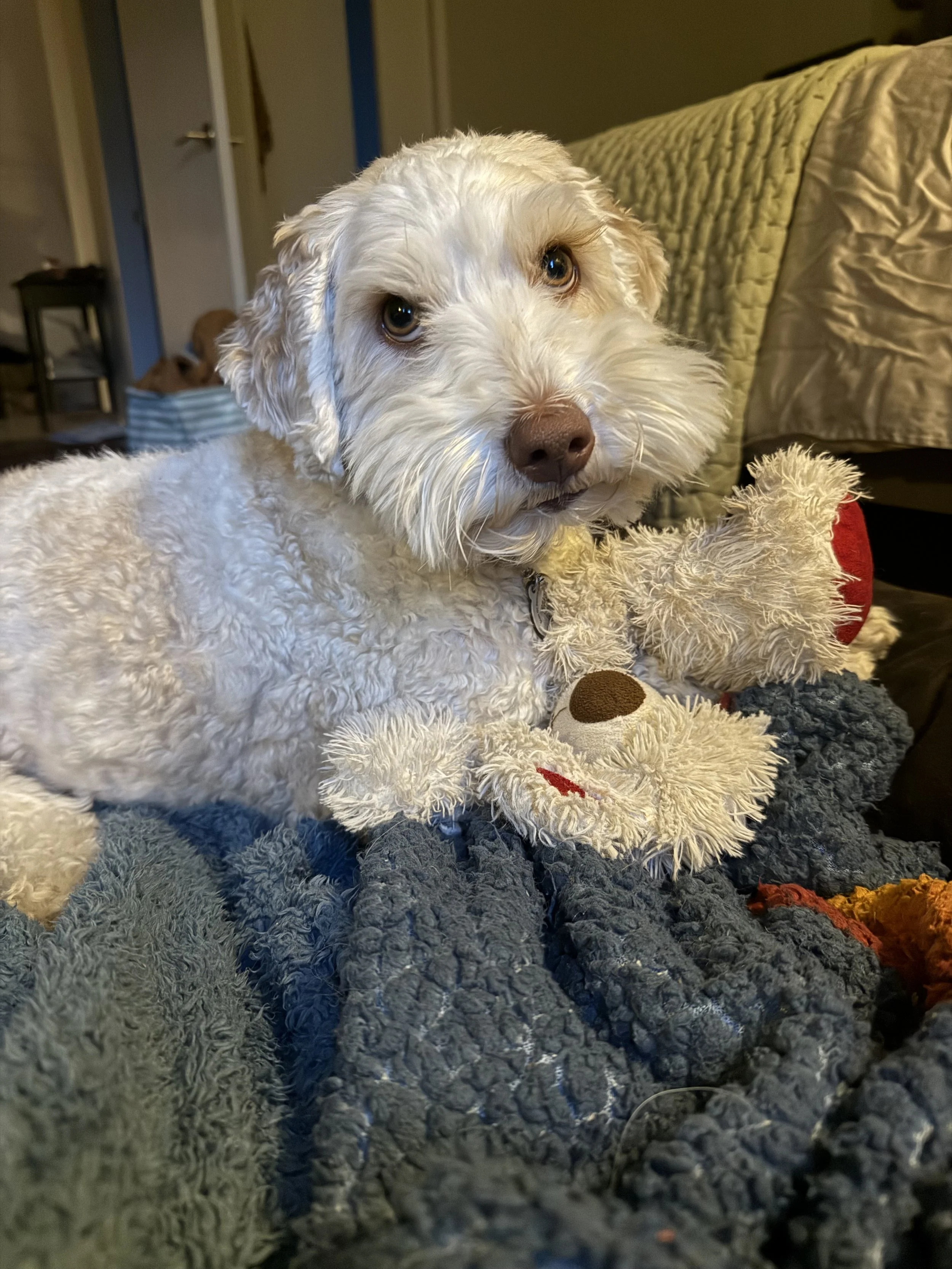 Such specific things like the way Lou lays on her back all splayed out for tummy rubs and the way Lenny carries around his stuffies. Also, the crystal or disco ball you mentioned really resonates. We have a crystal in the window that makes a rainbow on the floor right where Lou lays!!! I also feel a deep connection to Lenny like we’ve known each other in the past.
